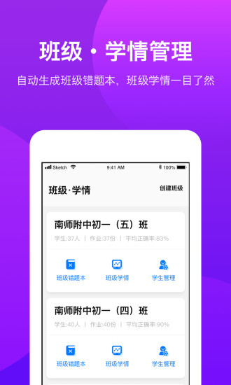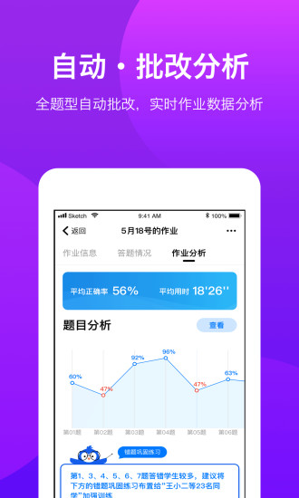 悠数学教师端免费下载是一款帮助老师们线上/线上教学的平台,为老师提供了丰富的本地资源与多场景作业布置作业的方式,老师们可以根据教辅选择题目/试卷让学生们练习,支持老师们在线上在线批改学生们的作业,它会及时提醒老师们有几份作业还未批改。悠数学教师端免费下载为老师们提供了分层作业模式,老师们可按照学生不同的学习情况,布置基础、培优、拔尖等不同难度的练习;对于一些选择题等题型,它能帮助老师自动批改,还能为老师们提供这次作业学生们的答题情况和作业分析,以折线图的形式让老师们直观了解这次作业情况。老师们可以随时随地查看班级错题本和班级学情情况,还能对学生们进行管理,是老师们的好帮手!
