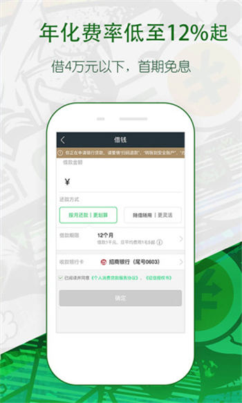360借条app手机版免费是市面上一款非常优质的信用贷款平台。用户可以在平台上快速的办理信用贷款业务,最快1分钟即可完成转账放款。软件为用户提供了多种不同的分期还款方式,信用良好的用户将会不断的提高可贷金额。360借条app手机版免费拥有超强的安全防护技术,绝对保证用户的资金及贷款信息安全。软件的贷款利息公开透明,绝对不存在任何欺骗诱导陷阱,利息全网最低,用户可以放心下载使用。360借条app手机版免费支持用户全程手机办理,只需进行简单的身份信息验证即可完成快捷的网络贷款。
