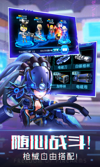 游戏以暴力萌系的画风,特效的枪式和酷炫机甲,各式装扮的二次元机娘女仆,结合完全创新的横版射击玩法,创造出让大家眼前一亮的射击游戏体验。在二次元世界尽享暴力美学,数种机甲和枪械随意切换,变更战术,在瞬息万变3V3的团战战场中痛快酣战。快带上你的弹药,跟傲娇大小姐一起体验星际战斗吧!