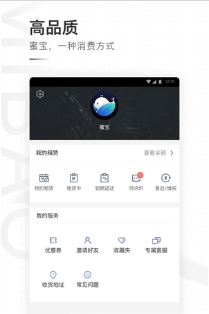 蜜宝二手手机分期租赁商城的品牌宗旨在于提升用户的生活品质,用更少的钱享受更好的生活,用户只需要有良好的信用记录,即芝麻信用分≥650,便有机会免押金进行租赁,或者信用分大于600分使用花呗作为押金进行租赁。租赁商品基本以高价商品为主,品类齐全,走在科技与时尚的前端,让有信用的人享受到品质生活,让生活有无尽可能。