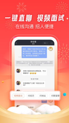 2、在线沟通视频面试:同求职者在线视频,直接面试,最快当天入职;