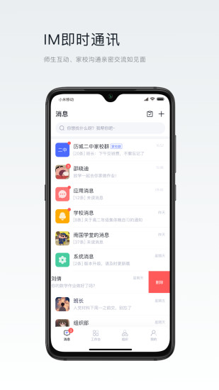 1、整合家校共育、学业诊断、即时沟通、课程表、工作台等功能于一体