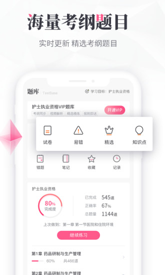 1.包含了护理考试交流平台、视频讲解、在线练题、错题收藏等丰富功能。