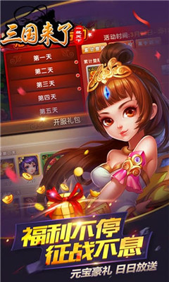 三国来了安卓版受到广大玩家的喜欢,是款以三国为题材的策略卡牌的RPG手机游戏,这款游戏不只是拥有超精美细致的游戏画面和好看的人物形象,还搭配好听的游戏背景音乐,带领玩家重回三国时代。三国来了安卓版手机游戏中,里面所有的三国武将皆可培养成神将,玩家可以选择培养自己最喜欢的三国武将,通过一系列的培养方法,打造出独属于自己的最强三国武将,再给他配上极品专属武器,大幅度加强武将全方位属性和能力。更有华丽炫酷的大招支持全屏释放,达到震撼眼球的效果,给你带来不一样的游戏战斗体验。你还在等什么呢,快来下载加入我们,打造最强最完美的三国武将,征战四方,一统天下!