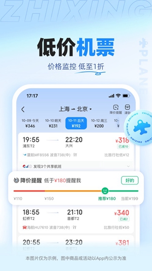智行旅行官方正版下载是一款购票软件,软件中有各种类型的车票,什么飞机、火车、汽车、酒店、轮船等等都可以购买到车票,并未车票在购买的时候还有很多的优惠活动,你可以把自己想要的车票标记,就可以查看它的价格波动了,在价格最低的时候就可以提醒你了,并且购买长途车票还有机会附赠免费的酒店入住,用户在使用智行旅行官方正版下载的时候购票方便,可以查询剩余的车票没有票的时候还可以抢票,一旦有票就会第一时间通知您,在这里的车票开通的地点丰富,你行去哪里都有车票买到,并且在购买订单中还会提醒你的车票出发时间,通知检票时间等,坐飞机的时候会明确你航班信息与登机口等信息,让用户租做的快捷方便。