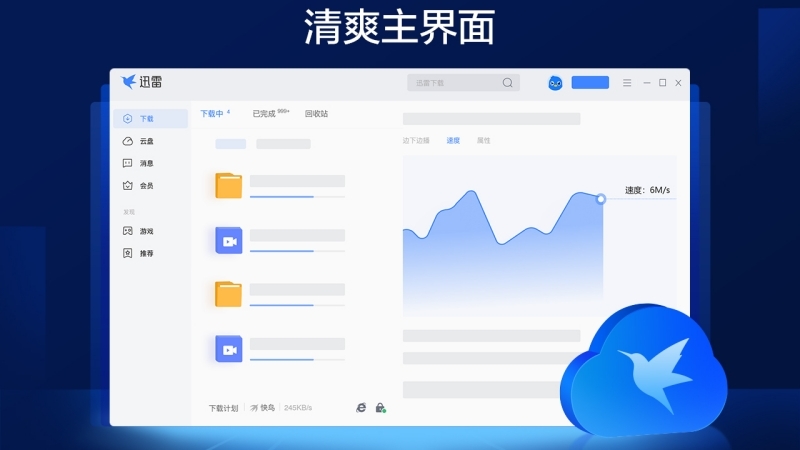 迅雷专业加速通道,云盘内容高速下载,无需长时间等待;