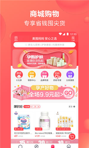 3、母婴限时特卖、网罗全球好货,海淘正品。因为爱,所以严苛。