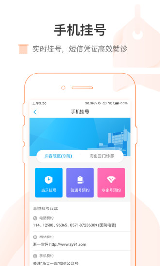 2、手机挂号:普通号实时挂,专家号直接预约;