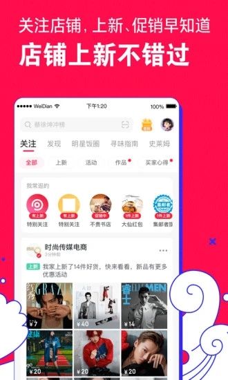 *关注:“特别关注”喜欢的好店,快速了解店铺上新、促销动态;