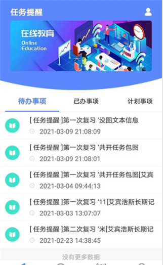 2、自定义学习任务,自动生成科学的复习计划,任务开始推送,提醒用户及时完成学习,巩固记忆。