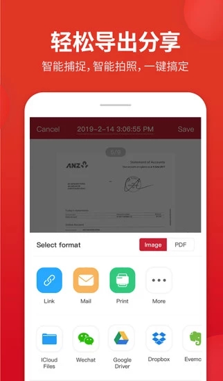 只需手机摄像头就能将收据、发票、会议记录或者名片电子化,实现无纸化办公。