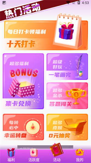 全皮大佬领皮肤下载安装每天都可以在线打卡,都能在这里进行各种游戏皮肤的兑换领取。界面版块非常多,包含了很多优质的服务可以供你任意选择。各种类型的游戏分类可以直接在下面搜索查询,完成平台上的各种任务即可直接兑换你喜欢的皮肤,非常适合游戏新手玩家,让你轻松就能拥有好看的皮肤。
