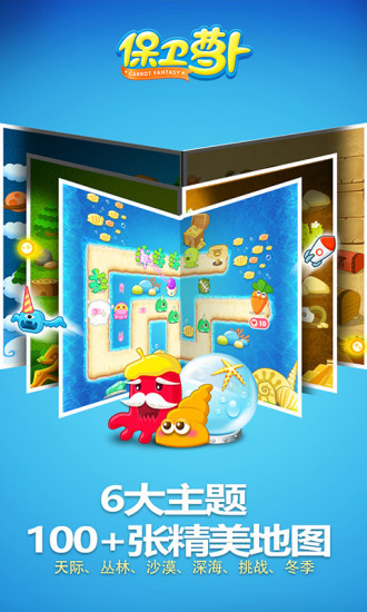 保卫萝卜官方版是由飞鱼科技公司开大的一款塔防休闲手游。游戏以萌系风格为主,老少皆宜,内置新手教程,玩家更加容易上手。保卫萝卜具游戏具有很高的人气,这个IP系列游戏都在手游市场有着良好的口碑。曾获得2012年苹果官方APP Store年度游戏提名,Android、iOS平台下载量突破5000万。游戏的主要人物就是保卫萝卜,别人它被外星人吃掉,萝卜都有设定10格血量,被怪兽攻击10就游戏结束。玩家需通过在地图的空置区域中布置输出类炮台、干扰类炮台、长距离和大面积攻击范围炮台,有这些炮台击败怪兽。地图中有很多道具,玩家需打破这些道具来扩充地形和金币。这样一款超级休闲的游戏,无聊时打发时间的首选软件,快来下载体验吧。
