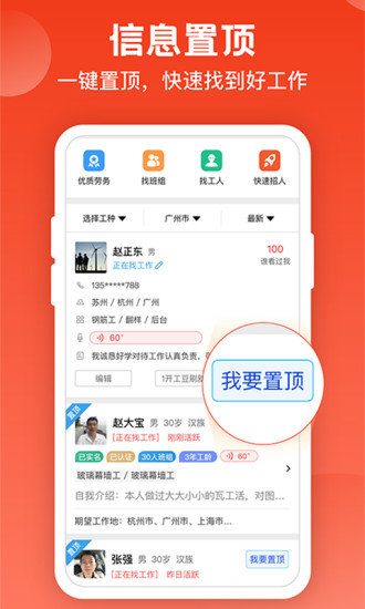 4、随时随地发项目,优质班组快速找。