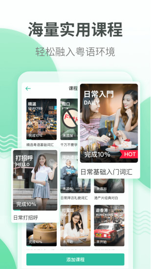 1、大量实用的粤语学习课程,课程类型很全面,覆盖了多个不同的场景。