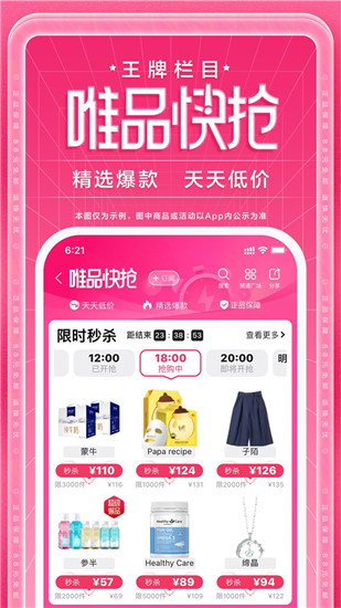 唯品会下载app是一款正品大牌购买平台,唯品会下载app拥有丰富的商品资源,优惠的价格,让大家都可以在这里享受优质购物的体验,多样的分类频道,还有直接的搜索功能,能够轻松满足每一个用户们的使用,想要买什么,都可以在这里快速的找到,每一次的搜索,都有海量商品为你呈现,你们可以自由的点击查看,看商品的详情页,评论,买家秀,还可以和卖家进行直接的聊天沟通,帮助大家更好的去挑选,发现同款中优质好物,在线直接下单,快速送上门,让你在最短的时间内,得到自己想要的宝贝!