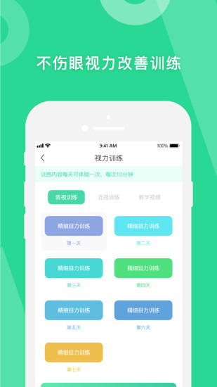 通过这个软件我们可以学会在生活中要怎么保护自己的视力和眼睛,还可以养成良好的用眼习惯。对于视力有问题的朋友你还可以获取到各种改善的训练。