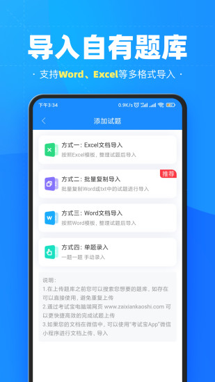 当您在考试中没有找到想要练习的题库时,可以通过我们的网站上传您的自有题库,进行在线刷题练习,如果题目数量大,使用人数多,可以联系客服协助导入.