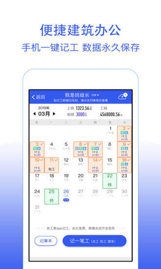 【便捷记工】手机一键记工,数据永久保存不丢失;