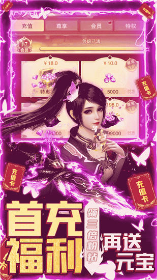 1、上线送V12,38888元宝,500W金币(创建角色上线即得),更有海量福利领到手软!