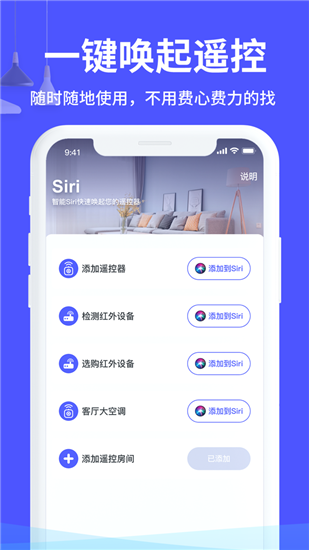 万能遥控器苹果免费版是一款非常实用的手机万能遥控器,随着生活水平的提高和智能设备不断的发展,很多用户都会购买智能的设备,用户可以用这款软件一键控制家里的智能设备,操作非常的简单,界面非常的简洁,功能非常的强大,是很多用户必备的手机软件,不管是控制空调,还是家里的其他设备,都可以用这款软件进行一键控制,还有很多好用的功能等你来体验,需要这款软件的用户,随时都可以来下载软件使用。