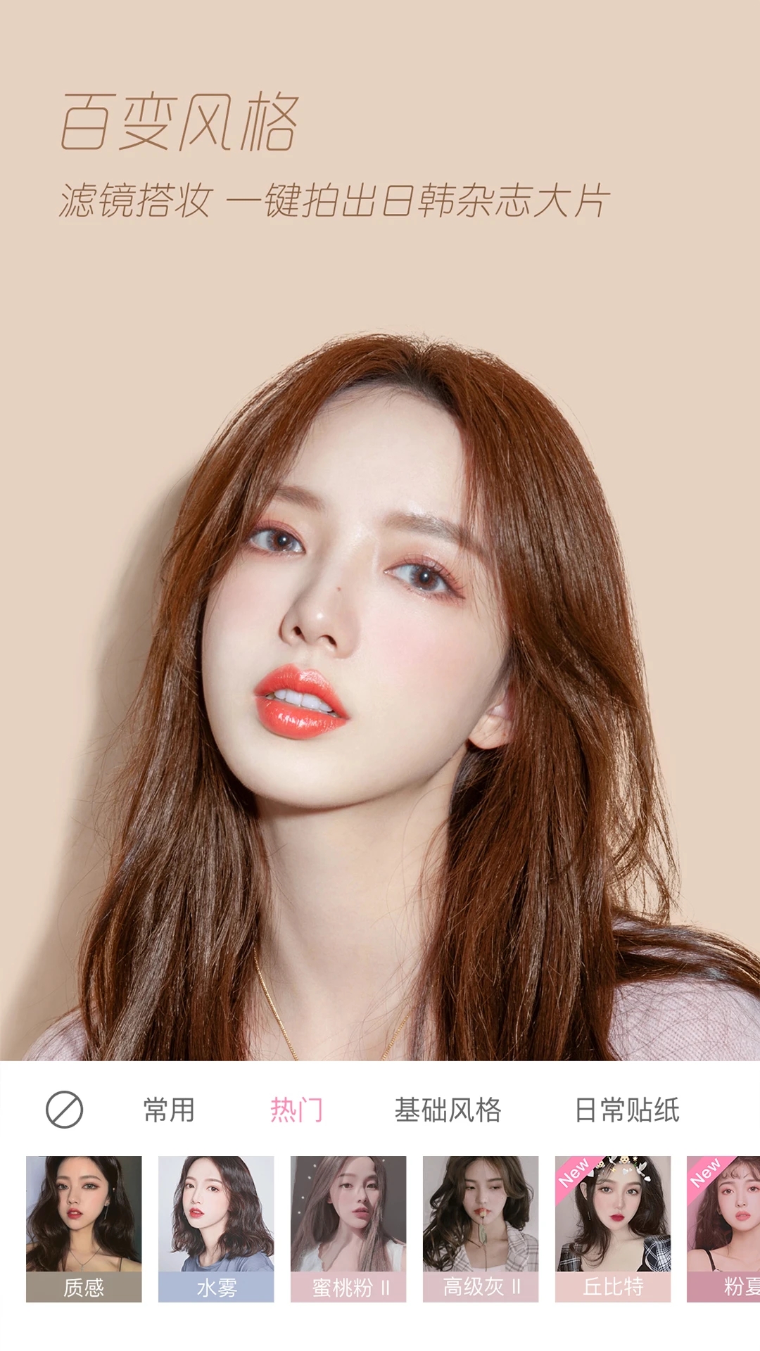 滤镜搭配妆容,营造多样化的整体拍照氛围,每一张都可以是不同风格的自己,轻轻松松拍出高级杂志大片。