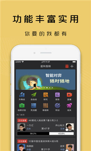 星阵围棋手机版是国内顶尖的围棋教育平台,专为各不同水平的围棋爱好者设计打造。在星阵围棋手机版中你可以自由学习符合自己水平的围棋课程,可以帮助零基础的围棋爱好者进行入门,帮助每一位用户都大涨棋艺。