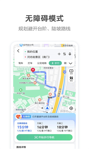 3、可为驾车、骑车和步行路线提供GPS语音导航。