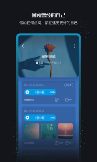 2、让自己的心情得到记录,给你带来更好的使用体验,是一款靠谱的语音交流社区。