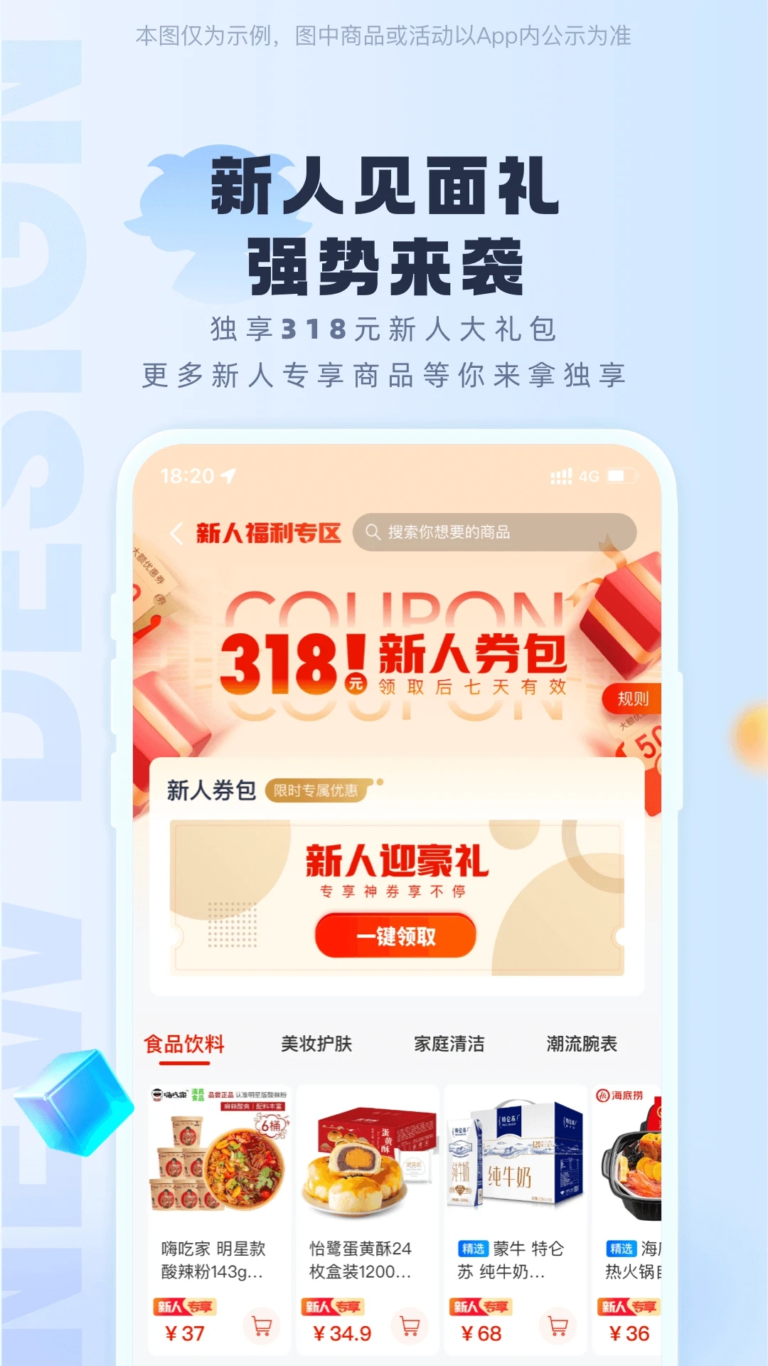 【品类丰富】商品覆盖众多品类,享受更实惠、更便捷的购物。0元购、1元购、9.9秒杀等专区让你购物不剁手,另有新人礼包,登录即送大额优惠券,你购物我补贴!