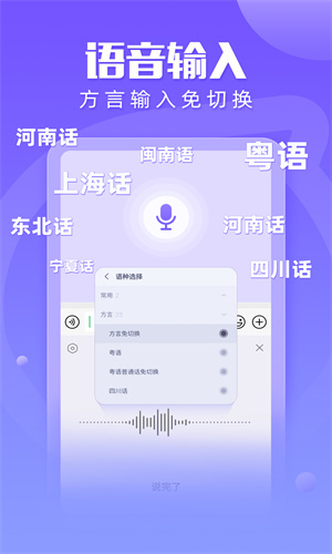 说话秒变文字:说话就能输入文字,语音识别准确率高,1小时可输入1万字;而且能够听懂你的家乡话(目前已支持18种方言输入)