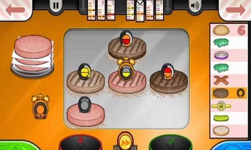 煎肉,肉的熟度是根据指针提示的,达到要求才行。