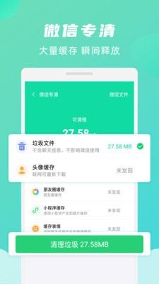 绿色清理大师极速版是由上海梦策网络科技有限公司开发的一款可以帮助手机清理各种垃圾的应用软件APP。用绿色清理大师极速版可以自动快速扫描出你手机里面的所有垃圾,然后一键快速清理帮你的手机健康瘦身。其实很多时候我们的手机在硬件和系统方面都没有问题,只是因为手机里面的隐藏的内存垃圾和各种缓存太多,导致占用手机太多的运行资源,使得手机在运行过程中变的很卡很慢。这个时候你只需下载这款绿色清理大师极速版给手机来一次大清理就能让你的手机,重新回到之前的良好状态了。很多缓存和已删除软件残留的垃圾普通用户是不懂的删除的而且很麻烦。