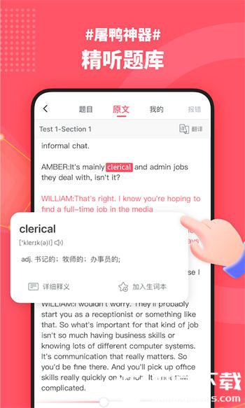 小站雅思官方版app是一款专为备考雅思的用户打造的学习软件,这款软件中有着超多实用的功能设计,用户能够在听、说、读、写上都得到提升,带给用户针对性的指导。小站雅思官方版app有着海量的真题材料,不仅拥有全套剑桥雅思听力、阅读备考材料,还为用户提供了详细的解析,以全方面的真题解答为用户提供更好的知识理解。小站雅思官方版app中,还为用户提供了真人口语模拟功能,逼真的场景打造和真人考官,为用户还原真实考试现场,训练考试语境,以更具代入感的方式,让用户在不断的训练中适应考场氛围。有需要的用户快来下载吧!