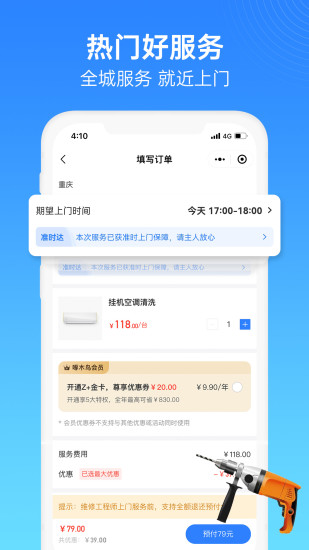 4.一键式服务评价系统.全国2000多名上门师傅,拥有3年以上从业经历.