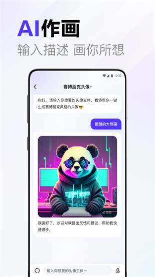 选择到AI绘画功能时就可以让用户通过输入对绘画内容的描述来生成该绘画内容
