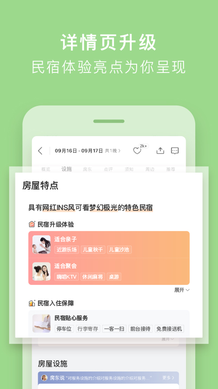 能做饭能洗衣,能带宠物能聚会,能长租能短租,更具家庭氛围;精选国内外中高端度假公寓、别墅及特色民宿,风格迥异,体验新奇;