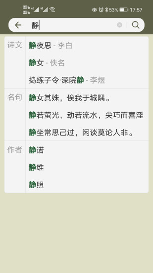 古诗文网app官方下载是一款为用户们提供了古诗文资源的手机学习软件,在里面没有任何花里胡哨的内容,不收取用户们的任何费用,海量古诗文资源让用户们无需VIP免费看。古诗文网app官方下载它为用户们提供了诗文、名句、古籍等频道的精彩内容,为用户们提供了全套的诗经内容。用户们只需输入一个字,它就能立马反应出跟这个字相关的诗文、名句、作者。每一首古诗词都为用户们提供了详细的译文以及注释,它还能为用户们朗读整首诗。它每日为用户们推荐各种符合用户们口味及兴趣的优美古诗文,在读完优美的古诗文时还能在上面做属于自己的读后笔记。