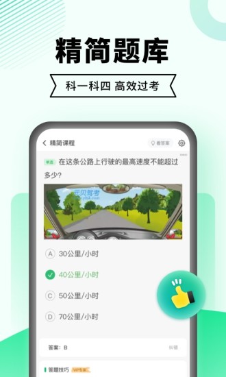 驾考一点通app官方版是一款非常实用的驾考学习软件,这款软件不但拥有最新的规定的驾考题库等你阿里玩法,还根据各个地方的驾考规定智能调节题库,帮助用户更好的进行备考学习,轻松拿到驾照。驾考一点通app官方版提供了多种刷题模式,顺序刷题,随机刷题,专题练习,模拟考试,错题本等都有提供,轻松满足不同用户的练习需求,不但拥有优质的答题技巧等你来学习,还有精简500题让用户可以高效备考。驾考一点通app官方版拥有非常丰富的学车视频等你来观看,还有真实还原的灯光模拟考试功能,喜欢的话千万不要错过,感兴趣的用户快来下载吧。