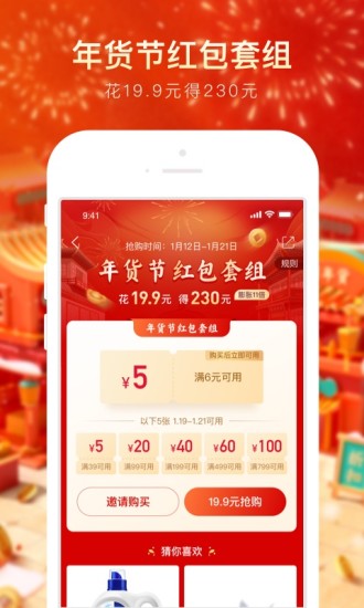 1月12日 - 1月17日:逛年货特色街,抢230元红包套组!