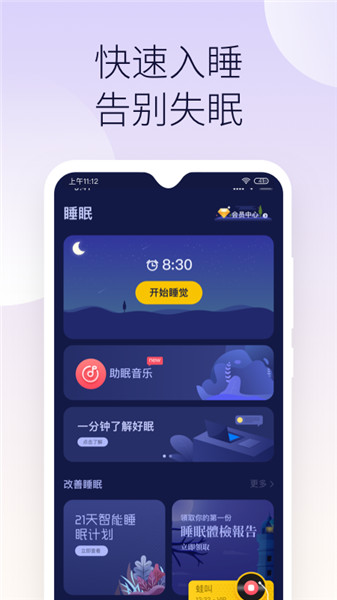 好眠是一款帮助用户解决起床睡觉问题的睡眠神器,让你养成健康的作息状态。好眠设计风格简洁、大气,操作简单,每天仅需两步,即可获得整晚好眠。好眠科学帮你制定个性化睡眠计划,记录睡眠状态以及分析睡眠质量。好眠app借助专业助眠音乐、故事、ASMR等方式助您快速睡着,养成健康睡眠习惯,提升睡眠质量。好眠适用于长期失眠、学习生活压力大的人群,app会根据用户的入睡和起床时间,智能推荐适合最佳作息时间,规律作息,开启健康睡眠。每天晚上打开好眠,放在床头,一整晚安静陪伴您入睡。