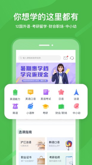 1、设置完善的课程体系,涵盖了十多个国家的语言学习,还有粤语,上海话等方言的学习课程;