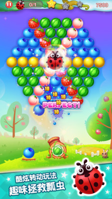 1、指尖滑动控制水果泡泡的发射方向,解锁新道具。