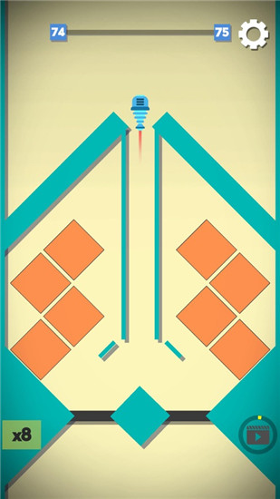 3、在不同障碍物和机关里,不断反射,切碎一切可以切割的东西。