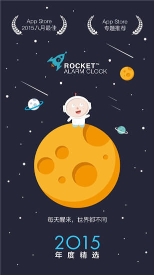 2、全球最具设计和趣味的火箭闹钟, 融合了手机内置的加速计、重力计,以及麦克风来增加交互的趣味性,残忍又小清新