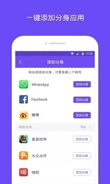 1. 微信双开:支持新版本微信,更加稳定安心,减少封号风险;