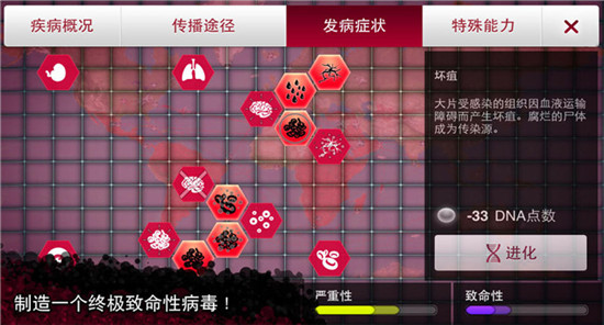 1.游戏的初期最好选择传播速度快的病毒,这样你后面就可以提升病毒的威力;