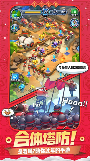 2. 合并升级炮塔,有策略的搭配各类炮塔,抵抗不同的敌人。