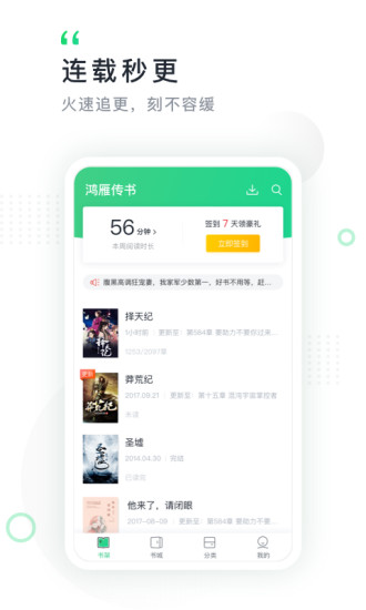 鸿雁传书是一款汇聚了海量小说资源的线上阅读APP。鸿雁传书将市面上的小说全都进行了精细的挑选分类,还设置了数千个特色标签,帮助用户更快的查找小说资源,每天实时的进行更新,是追书的必备神器。鸿雁传书还支持在线缓存和一键下载,让用户能随时随地的阅读小说,享受舒适的体验。