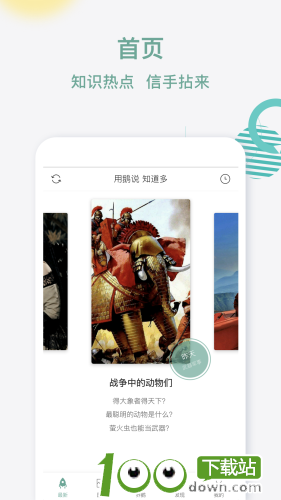 「知识卡片」跟百科有什么区别吗?在「鹅说」的知识卡片中,你会在80%的卡片背面发现一些惊喜——这些惊喜来源于你曾以为熟悉的知识或事情,总有一些边边角角是你不曾听过的,于是在「鹅说」中对知识进行「拾遗」将是你最大的惊喜!